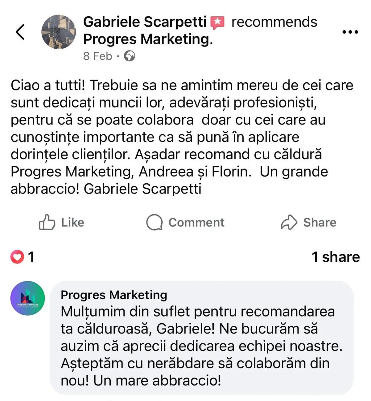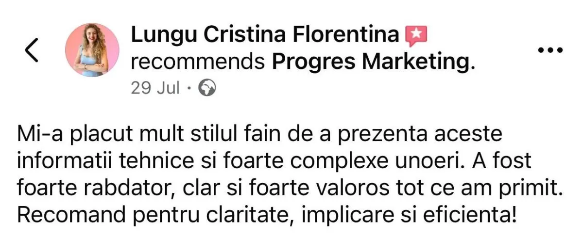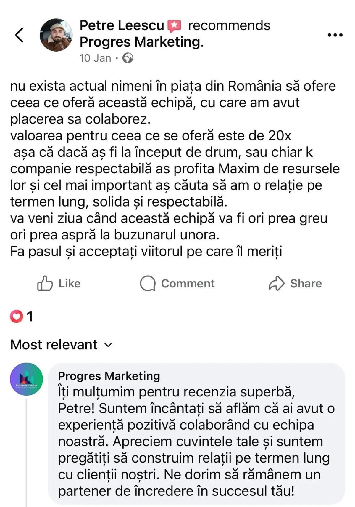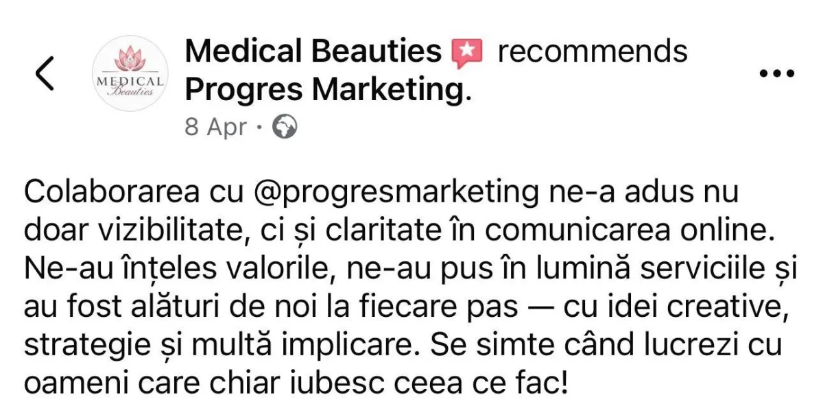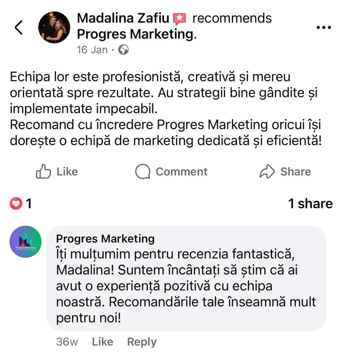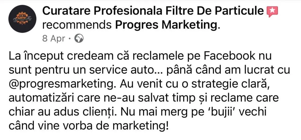 La Progress Marketing, nu facem doar marketing. Construim strategii care aduc clienți reali și îți poziționează brandul acolo unde trebuie să fie: în fața publicului potrivit, în momentul potrivit.