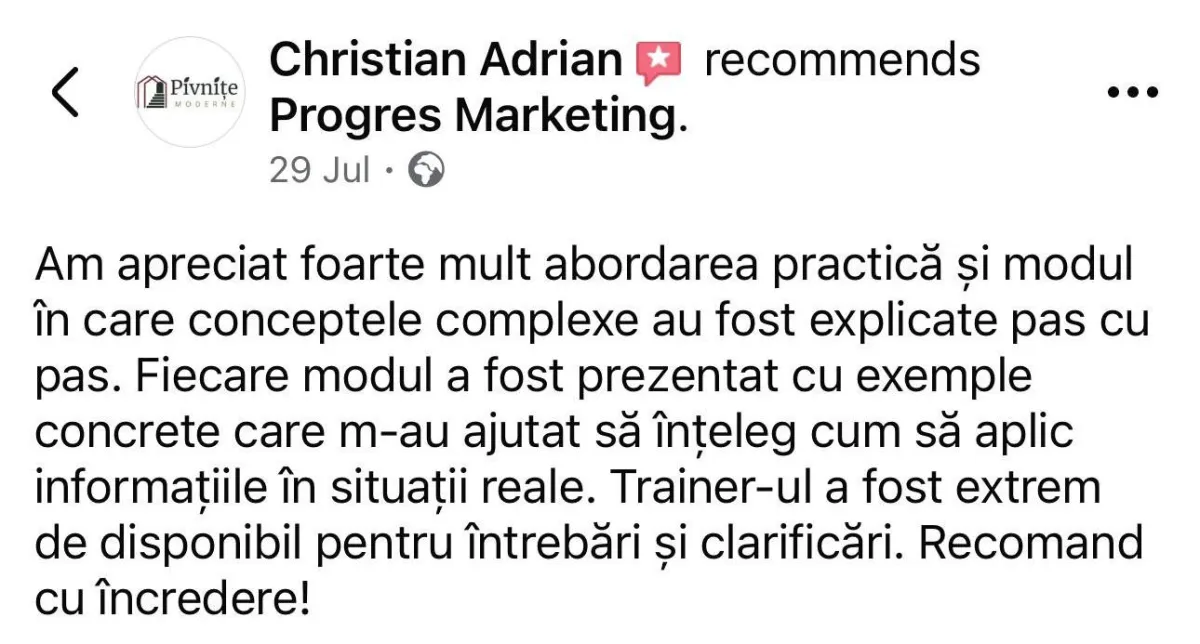 Prin completarea acestui formular, ești de acord cu primirea de informații despre serviciile și ofertele oferite de echipa Progres Marketing și cu politica de confidențialitate a datelor.